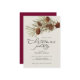 Elegant christmas invitation with pine branch. Invite your friends and family to celebrate the magic christmas party together with this botanical invitation featuring beautyful winter branches illustration and modern script lettering. Trendy colors: wine burgundy and beige. You can customize the invitation with your text.