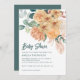 Este é um convite de chá de fraldas com buquê floral de crisântemo, orquídeas, grama-pampas, rosa e design de eucalipto.