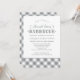 Este convite de churrasco para jantar de ensaio discreto e versátil apresenta uma tipografia cinza suave e uma borda xadrez prateada clássica para um visual limpo e neutro que combina com qualquer paleta de casamento. Letras mistas e estilo western "Churrasco" mantêm o design divertido sem ser exagerado. Todo o texto é totalmente personalizável. Uma ótima escolha neutra para um churrasco casual no quintal ou ao ar livre para ensaio de casamento.