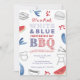 É um CHURRASCO vermelho branco e azul! Convide vizinhos, família e amigos para celebrar o feriado All-American na sua festa de CHURRASCO.