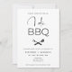 Eu faço CHURRASCO: um convite preto e branco moderno e simples para um Festa de noivado ou Chá de churrasco.