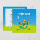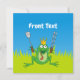 Príncipe sapo com ferramentas de CHURRASCO, amêijoas e espátula sobre grama verde sob o céu azul.