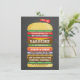 Hambúrguer Empilhado Único com cebolas, picles, alface, cachorro-quente, queijo, mostarda, ketchup, sobre fundo de quadro. Um padrão de piquenique vermelho de gingham está atrás do convite. Seu convidado adorará este convite único. Personalize com seu próprio texto. Por favor, procure na minha loja mais assim. Ilustração Original por pj_design. Envie-me um e-mail se precisar de ajuda. Você pode tornar esta placa maior personalizando-a e clicando nas opções de papel.