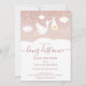 Com uma cegonha fofa carregando uma entrega muito especial, em um fundo de glitter dourado-rosado e rosa-bege, este convite de baby shower, sprinkle ou chá de casal pelo correio é perfeito para todos os pequenos que estão a caminho. Adicione os detalhes da sua celebração em texto elegante para criar o convite perfeito. Criado por Thisisnotme©