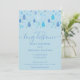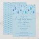 Cute gotas de chuva azuis bebê caem em direção aos seus detalhes personalizados em um fundo azul bebê, este lindo chá de bebê, convite por correio para aspersão ou chá de casal é perfeito para todos os pequenos que estão a caminho. Adicione os detalhes da sua celebração em texto elegante para criar o convite perfeito. Criado por Thisisnotme©