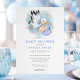 Convite Chuva Azul de Água Pintada com Pássaro Moderno par
