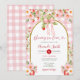 Convite Floral Gingham Rosa com Laço para Chá de Noiva de Morango no Estilo Coquette