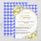 Celebre o seu próximo pacote de alegria com este elegante convite de chá de noiva temático de limão. Com um estilo italiano Amalfi azul e fundo xadrez branco, delicados limões aquarelados, folhagens frescas e um laço rosa, este design cria uma atmosfera quente e convidativa perfeita para um chá de noiva de verão ou inspirado em cítricos.