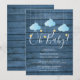 Perfeito para convidar amigos e familiares para um chá de bebê especial. Com nuvens azuis fofas e estrelas douradas em cordas, em um fundo de madeira azul rústico, este convite de chá de bebê é perfeito para todos os pequenos que estão a caminho. Adicione os detalhes da celebração em branco para criar o convite perfeito. Criado por Thisisnotme