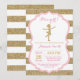 Convite Chuva de Bebê Bailarina Brilho Rosa e Dourado