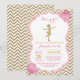 Convite Chuva de Bebê Bailarina Brilho Rosa e Dourado