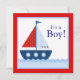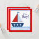 Convite Chuva de Bebê Barco à Vela Vermelho Branco Azul Ná