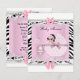 Convite Chuva de Bebê Bela Zebra Bebê Menina Renda Rosa