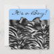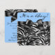 Convite de chuva de bebê menino azul elegante e adorável zebra. Adicione seus detalhes na frente e no verso simplesmente adicionando os detalhes do seu evento, estilo de fonte, tamanho e cor da fonte e texto. Por favor, note que todos os desenhos de convite que você encontrará no Zazzle são gráficos impressos em papel liso sem joias, laços, relevos, rebaixados ou peças ou partes adicionadas.
