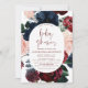 Convite Chuva de Bebê Burgundy Azul Naval Floral Eucalipto
