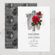 Convite de chuva de bebê casal gótico de caveira floral vintage caprichoso em tons de preto e vermelho personalizável para os detalhes do seu evento.