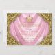 Convite Chuva de Bebê da Princesa Real em Cetim Rosa e Dou