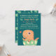Um adorável pequeno dinossauro laranja nasce de um ovo com manchas verdes e amarelas! Convide os convidados para celebrar com a futura mamãe com este convite temático de dinossauro fofo. No verso há um padrão de folhas tropicais verdes. Personalize com os detalhes do chá de bebê nos modelos de texto fornecidos.