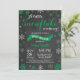 Convite de Chuva de Bebê de Inverno. Floco de Neve Verde. Convite de Chuva de Bebê Menino ou Menina. Convite de Chuva de Bebê de Feriado de Inverno. Flocos de Neve Verdes e Brancos. Fundo de Lousa de Giz. Para personalização adicional, clique no botão "Personalize" e use nossa ferramenta de design para modificar este modelo.