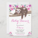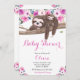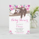 Convite Chuva de Bebê de Preguiça Floral Rosa e Sonolento