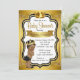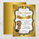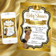 Convite de chuva de bebê preto e dourado com lindo príncipe afro-americano usando uma coroa preta e dourada em um fundo elegante preto e dourado. Você pode personalizar facilmente este lindo convite de chuva de bebê preto e dourado para o seu evento, simplesmente adicionando seus detalhes no estilo de fonte de sua escolha. Este é um design impresso sem brilho real.