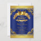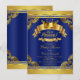 Convite de chuva de bebê do príncipe azul real com coroa dourada elegante e faixas em um fundo rico de redemoinho azul real e dourado. Este convite de chuva de bebê do príncipe azul real e dourado é facilmente personalizado, basta adicionar seus detalhes no estilo de fonte de sua escolha. Este é um design impresso sem diamantes reais, ouro, etc.