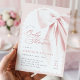 Convite de Chuva de Bebê Elegante com Laço Rosa. Este convite elegante apresenta um charmoso laço rosa bege e uma escrita romântica à mão, perfeito para uma chuva de bebê caprichosa para menina. O laço sofisticado e o design elegante adicionam um toque de sofisticação, enquanto o modelo editável permite uma fácil personalização. Crie um convite lindo e memorável para o seu evento especial.