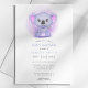 Celebre a chegada iminente com este encantador convite de chuva de bebê com um coala roxo caprichoso. Perfeito para uma chuva de bebê, este convite combina elementos lúdicos com detalhes elegantes em aquarela. As cores vibrantes e o design fofo tornam-no uma escolha ideal para dar as boas-vindas a um novo bebê com estilo.