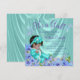 Convite de chuva de bebê étnica para menina com roxo e azul turquesa com flores roxas e turquesa e adorável bebê menina vestindo turquesa e um colar de pérolas em um fundo de cetim luxuoso e lindo. Você pode adicionar seus detalhes no estilo de fonte e cor e redação de sua escolha. Algumas artes gráficas©Delightful-Doodles.