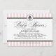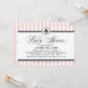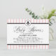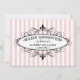 Este convite de chuva de bebê francês antigo encantador apresenta texto elegante em caligrafia "Chuva de Bebê", um emblema clássico fleur de lis preto, floreios ornamentados e listras de sala de estar rosa e branco suave. O refinado acento de fita preta e branca adiciona um toque final chique. Todo o texto é totalmente personalizável para a sua celebração inspirada em Paris. Um favorito perene para uma chuva de bebê romântica e feminina para menina.