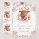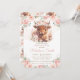 Personalize este lindo convite de chá de bebê com os detalhes da sua festa de forma fácil e rápida, basta pressionar o botão personalizar para reorganizar e formatar o estilo e a disposição do texto. Este convite caprichoso apresenta um adorável e fofinho bebê de vaca highland e flores cor de blush rosa. Todo o texto é editável! Ótimo para chá de bebê, celebração de bebê, novo bebê, festa no jardim, festa de aniversário, Cristã / Batismo e muito mais! Itens combinando disponíveis na loja! (c) The Happy Cat Studio.