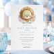 Celebre a chegada de um menino com este convite de chuva de bebê doce e encantador, apresentando um leão em aquarela cercado por flores azuis e rosadas delicadas. Este design traz um toque suave e caprichoso, perfeito para uma reunião inspirada na natureza ou com tema animal.