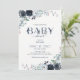 Convite Chuva de Bebê Floral Azul Marinho Boho