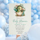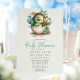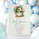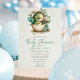 Dê as boas-vindas a um pequeno com este encantador convite de chuva de bebê floral ovo de dinossauro. Com um dinossauro bebê aquarela eclodindo de um ovo, rodeado por flores delicadas e folhagens, este convite é ideal para uma chuva de bebê temática da natureza ou dinossauros. Perfeito para os pais que esperam um menino, combina elementos caprichosos e suaves, criando um design único e memorável para celebrar a chegada iminente.