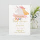 Um design moderno, laranja rosa, branco e dourado incluindo um convite de Chuva de Bebê floral de unicórnio mágico fofo é a impressão perfeita para o evento especial de qualquer futura mamãe. Personalize este design com seus detalhes e inicial do monograma.