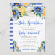 Convite Chuva de Bebê Flores de Verão Boho Azul e Amarelo