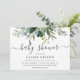 Este convite de chá de bebê apresenta eucalipto aquarela pintada e folhas verdes. Para personalização mais avançada deste design, por favor clique no link "Personalizar ainda mais". Itens correspondentes também estão disponíveis.