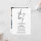 Este convite de chuva de bebê com letra elegante em preto e branco pode ser personalizado com todas as informações da sua celebração especial e foto especial no verso. Criado por Thisisnotme©