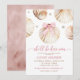 Convite de Chuveiro de Bebê Menina Arco Rosa Concha, Convite de Chuveiro de Bebê Ela Estará Aqui Em Breve, Convite de Chuveiro de Bebê Boho Rosa Costeiro de Verão, Convite de Chuveiro de Bebê Pérola Rosa Conchas