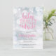 Este convite de chuva de bebê menina cor-de-rosa com flocos de neve em um fundo de geada chique é perfeito para a celebração da chuva de bebê de inverno. Adicione os detalhes do seu evento especial para criar o convite perfeito. Criado por Thisisnotme©