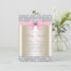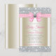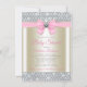 Convite de chuva de bebê rosa e dourado com um lindo laço de diamante rosa e dourado em um fundo elegante de brilho de diamante. Este convite de chuva de bebê brilho é facilmente personalizado para o seu evento.