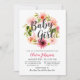 Convite Chuva de Bebê Menina com Coroa Floral Rosa Moderna
