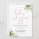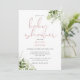 Um convite de chá de bebê elegante e sofisticado com uma tipografia rosa empoeirada e folhagem verde botânica. Criado por Thisisnotme©