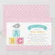 Convite Chuva de Bebê Menina Passarinho Rosa Blocos de ABC