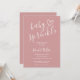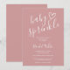 Um convite de chuveiro de bebê minimalista moderno com um coração desenhado à mão e tipografia estilosa em um fundo rosa empoeirado. Criado por Thisisnotme©