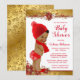Convite Chuva de Bebê Menino Afro Vermelho Dourado Natal