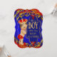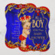 Chuva de Bebê Menino de Cabelo Castanho Pequeno Príncipe. Elegante fofo vintage bebê menino com coroa de jóia vermelha, Calças e Sapatos Vermelhos. Chuva de Bebê Azul Real & Vermelho. Convite de Festa "é um menino".