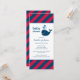 Este convite de chuva de bebê em formato esbelto e náutico apresenta uma baleia naval simpática com respingos de água em forma de coração, contra um design de listras diagonais vermelhas e azuis-navais ousadas. A combinação clássica de cores náuticas é perfeita para uma celebração de bebê menino em um formato de cartão moderno e elegante. Um padrão de listras coordenadas adorna a parte de trás do cartão. Todas as palavras são totalmente personalizáveis para o seu evento.