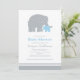 Este convite de chá de bebê apresenta uma adorável silhueta de elefante cinza mãe com seu precioso filhote de elefante azul, contra um fundo suave de bolinhas cinzas. O charmoso design de elefante mãe e bebê é perfeito para uma celebração de bebê menino. Toda a redação é totalmente personalizável para o seu evento.