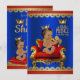 Convite de chuva de bebê príncipe étnico com adorável príncipe bebê étnico em uma cadeira real vermelha e dourada em um belo fundo vermelho, azul e dourado. Este convite de chuva de bebê príncipe real é facilmente personalizado para o seu evento, adicionando seus detalhes no estilo de letra, cor e redação de sua escolha.